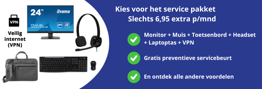 Een laptop alleen is tegenwoordig niet meer genoeg voor een optimale thuiswerkplek. Om echt productief en comfortabel te kunnen werken, heb je de juiste accessoires nodig. Kies daarom voor de extra optie van Skala en ontvang een compleet laptop pakket! In dit pakket zitten alle belangrijke tools voor een ideale werkplek thuis. Naast een krachtige laptop, ontvang je ook een beeldscherm voor meer werkruimte, een draadloos toetsenbord en muis, een headset voor onder andere videocalls en een handige laptoptas voor onderweg. Met een veilige VPN-verbinding werk je veilig en zorgeloos vanuit huis. Van Skala krijg je de complete werkset en we bezorgen hem ook nog eens gratis bij je thuis. Onze monteurs installeren en sluiten alles netjes aan, zodat jij meteen aan de slag kunt. Samen maken we voor jou de ideale thuiswerkplek.